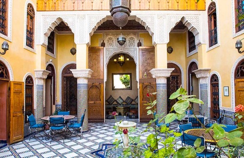 Completely renovated in 2011, the ryad has very high quality traditional decorations. Quiet and peaceful, the hotel benefits from its own private pool. You will be able to rest in the traditional Moroccan courtyard, by the swimming pool, or on the four-level, with it’s stunning 360° view over all Fes medina.