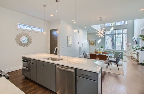 The Larmon mixes the charm of Nashville and the unique design of a modern LA Loft . With a fun floor to ceiling open floor plan and a spacious rooftop deck, it's the perfect home base for your stay in Nashville. Located in the heart of Melrose in Berry Hill, a small city within a city in Nashville also known as "Music Hill" Walkable to many music Hill attractions, recording studios, restaurants, and escape game. 2 miles to Downtown, Broadway, and The Gulch. Coffee shops, restaurants, and bars close by. Welcome to Nashville!