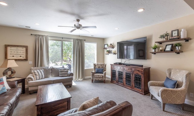 Situated in The Ledges of St. George, this area is a haven for golfers and outdoor enthusiasts. Just minutes away, discover a network of hiking, biking, and ATV trails, along with world-famous rock climbing and rappelling. Marvel at the views of the majestic red and white sandstone mountains surrounding The Ledges. A short ten-minute drive brings you to the world-renowned Tuacahn Theater, hosting plays and events in an incredible red rock amphitheater.