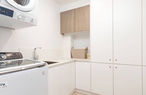 Split across two levels with three bedrooms and two contemporary bathrooms with underfloor heating and a powder room, a fully equipped large kitchen and laundry, you can stay indoors in comfort or make use of a wide range of fantastic restaurants, cafes and takeaway options throughout Forster. All of the beds are made up with linens and towels are rolled up ready for the bathrooms, just remember to pack you beach towels to make use of the nearby great beaches.
