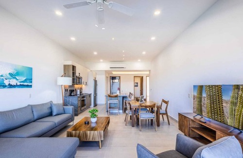 Discover your beachfront paradise at Dolce Vita Condo, perfect for a family vacation. This stylish 2BR villa offers stunning ocean views, luxury comforts, and top-tier amenities including a pool, jacuzzi, pickleball courts, beach club, and more. Just 2 minutes from TPC Danzante Bay Golf Course and steps from the sand, it's your ideal escape for relaxation, adventure, and unforgettable family moments.