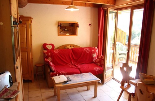 The Ancolies is a large chalet located in Les Clots hamlet, 1.5 km away from the resort center, 650 m away from the Moulin Benjamin chairlift and the ski school. A free shuttle runs in the hamlet every 40 min during the day. Ski shops, small grocery and bread are situated 750 m away from the chalet. Resort Map n°E7. Surface area : about 48 m². 2nd floor. Orientation : South, West. Living room. Bedroom with double bed (140). Bedroom with 2 single beds (2*90). Cabin with 2 bunk beds (2*90). Kitchenette with oven, washing machine, dishwasher, microwave, 3 gaz cooking rings, electric cooking ring, fridge. Bathroom with bath-tub. Separated WC. Balcony. The beds in elevation are not suitable for children under 6 years.