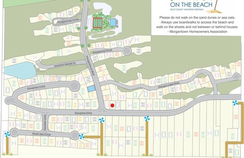 AWESOME VIEWS - The Grammont is a SECOND TIER, 4 bedroom, 3 bath home is perfectly positioned between the beach and one of the two community pools. This quaint cottage has spacious decking where you can unwind while watching the waves and listening to the sounds of the surf. The beach boardwalk is a convenient one house away and one of the neighborhood pools just just a short walk around the corner. From the moment you walk through the front door of "The Grammont", you will know that you are not on just another beach vacation. You have come home to a place that openly embraces the enchantment of the Gulf Coast . The decor of the living and dining area soothing and the furnishings are inviting. A full kitchen awaits you should you choose to prepare simple meals. Or, check out the restaurants in the area where you'll find a wide variety of cuisines. There is a lovely full bedroom with full en-suite bath on the main level. On the second level you'll discover a large, stately master bedroom with king bed, full bath and balcony access. There is also a cozy chair and ottoman in this room to catch an afternoon nap or maybe a few minutes of quiet time or reading. And you will love this second level balcony! The perfect spot to catch the sunset or star gaze in the evening. There is also a charming full bedroom with balcony access, a bedroom with two twin beds and a full bath on this level. You'll also find two convenient twin size folding beds in the master bedroom. Morgantown is a unique neighborhood with pastel colored homes, two swimming pools, lighted tennis courts and two community beach access boardwalks. You'll enjoy walking and biking through this family friendly community and are sure to make a return visit. Hang Out Festival Dates: May 15 - May 17, 2020 49th Annual National Shrimp Festival Dates: October 8 - October 11, 2020 Unfortunately, this property is not available to student spring break groups. Families and those over age 25 are welcome! Main floor: Full bedroom w/ private bath 2nd floor: King bedroom with private bath and balcony access; Full bedroom; Twin & Twin bedroom; Full bath; two Twin folding cots * wireless internet & cable TV * available to families and age 25+ groups to occupy * four decks * washer/dryer * outdoor shower * parking for 6 cars, suvs, or pickup trucks * 1792 square feet "The Grammont" is located at 6177 Sawgrass Drive, Gulf Shores, AL 36542. Seasonal nightly minimums may apply.