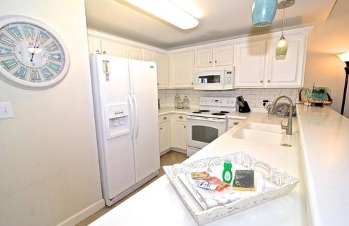 The kitchen has full size appliances including a washer and a dryer. It is stocked with all you need for most meals. Bring food and disposable products including garbage bags. The bedding arrangement is King, King, a bunk bed with 2 full size mattresses and 2 full beds, sleeper sofa in living room. Beds are made with white linen and a set is supplied for the sofa sleeper. All three bedrooms adjoin a bathroom. Bath and kitchen linen is supplied. Bring beach towels and makeup wipes.