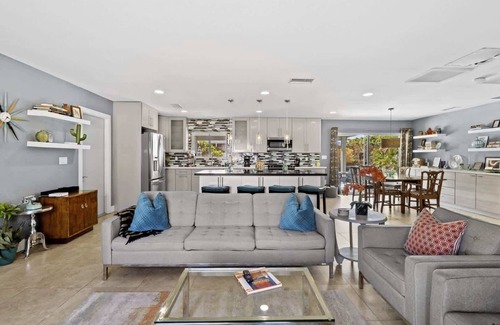 3 BDR Desert Oasis in the Heart of Palm Springs! has 3 Bedrooms , 2 Bathrooms, and max occupancy of 6 people. The minimum rental for this property is 1 nights, but this can change depending on the season you plan on staying. Previous guests have given good rated it, and VRBO labeled it a top-rated House because of the excellent services rendered by the owner or manager of this House, and has consistently provided great experiences for their guests. Most families or guests that use it recommend it to their friends and some of them are repeat guests. House has a friendly neighborhood, and the Racquet Club South has interesting places to visit. If you want to learn more about the House in Racquet Club South, such as places to visit and things to do nearby, you can check below to learn more.