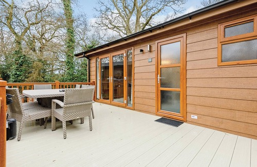 Luxurious and contemporary lodge perfect for a peaceful break away with family or friends. With comfortable master double with dressing room and stylish en suite shower and two twin along with spacious bathroom with shower over bath. Modern, well equipped open-plan living space with picture windows, living area with comfy seating, kitchen area with island, breakfast bar and dining area. Patio doors lead to spacious decking ideal for enjoying the woodland views. Pets allowed in selected accommodation only.