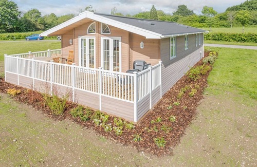 Bathroom: With shower over bath, toilet and heated towel rail.. Gas central heating, gas, electricity, bed linen, towels and Wi-Fi included. Welcome pack. Front garden with patio and garden furniture. Private parking for 2 cars. No smoking. . Brand New for the 2022 season, this lodge is extremely spacious with an open plan living space. With three French doors opening out onto the exceptionally generous deck, guests can enjoy the sun from dawn to dusk while appreciating an uninterrupted view of the ornamental lake. The lodge is set conveniently close to the large dog walking area and newly created children’s play area.