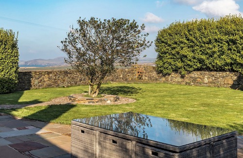 All rooms furnished with beautiful Melin Tregwynt cushions, curtains and throws. The day room overlooks a large garden and features a luxurious and comfortable large L-shaped sofa, a very large snuggle chair and a Bang and Olsen Sky TV. There is a cosy snug with a log burner, luxurious and comfortable two-seater sofa, two chairs and a TV with Sky. There are also iPod docking stations and unlimited access to Broadband. One well behaved dog is welcome too.