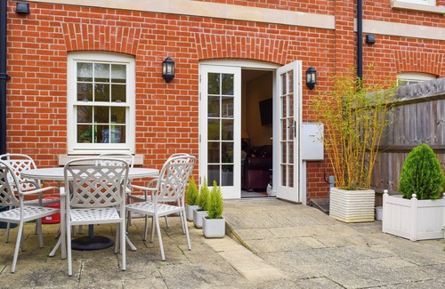 Bedroom 3: Double (4ft 6in) Bed Ensuite: Cubicle Shower, Toilet. Gas central heating, electricity, bed linen, towels and Wi-Fi included. Highchair. Enclosed courtyard garden with sitting out area and garden furniture. Private parking for 1 car; additional public car park, at cost, 530 yards. No smoking.. This charming three-bedroom townhouse is the perfect base for a weekend stay in the heart of Towcester, Northamptonshire. Set over three floors, the property offers a comfortable and stylish retreat for families, couples, or groups of friends. The ground floor features a modern kitchen and dining area, a convenient toilet, and a cosy living room with access to a private courtyard garden—ideal for relaxing after a day of exploring. On the first floor, you’ll find a twin bedroom, a kingsize bedroom, and a family bathroom with a shower over the bath. The second floor boasts a bright double bedroom with an en-suite shower room and stunning views overlooking Towcester.