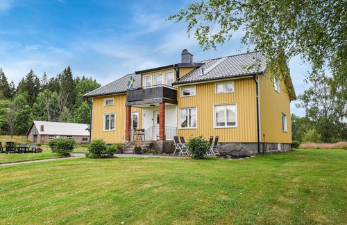 Cottage in the countryside, the ambience reflects the time around 1950. Here two families will find enough space. The country kitchen with old flair is very spacious. In the garden everyone can play together. A cozy idyll you will find here, with grazing animals on extensive meadows. A short walk on a winding gravel road brings you to lake Kalvsjön, a lake rich in fish. There are also berries and edible mushrooms around the house. Ullareds Gekås is 30 minutes away. There you can also find the suspension railroad Upzone, mini golf and a golf course. To the ski area Ikaberg is 60 km, where you can also find MTB trails, mini golf, obstacle courses and a moose garden. In winter there are 10 ski slopes and 8 ski lifts.
