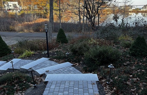 Well-lit path to entrance