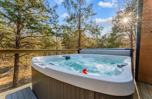 Unwind in the private hot tub while listening to the gentle flow of the creek, or indulge in the spa-like luxury steam shower after a day of adventure. Challenge friends to a game at the horseshoe pit, gather around the fire pit under a canopy of stars, or simply soak in the peaceful seclusion from the expansive deck. Tucked away in a private wooded retreat, this cabin offers the perfect stargazing escape—yet it’s just minutes from endless excitement. You’re only a short drive from Cricket Creek Marina on Table Rock Lake, Big Cedar Lodge, Thunder Ridge Amphitheater, and the vibrant heart of Branson. Whether you’re boating, exploring luxury resorts, catching a concert, or diving into the Branson Entertainment District—all within 20 minutes—you’ll love returning to this tranquil haven.