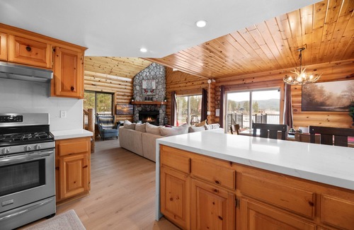 Newly remodeled with lots of upgrades and new furnishings! This beautiful lakefront home is perfect for living the lakeside lifestyle! Located less than one mile to The Big Bear Village and a short drive to ski resorts. Close to National Forest hiking trails. This gorgeous two-story log cabin style home is filled with mountain charm and comes with central heating. It's the perfect family getaway on the water with large windows in the living room to enjoy the view.