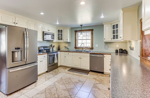 An effortless family vacation awaits at 'Bernville Retreat,' a 4-bedroom, 1.5-bath home! This vacation rental features a front porch for sipping morning coffee, a full kitchen, kid-friendly amenities, and ample entertainment space for your whole group. Spend days fishing at the lake, hiking along the Appalachian Trail, or exploring Crystal Cave. Afterward, head home to prepare dinner on the grill and roast marshmallows by the fire pit.