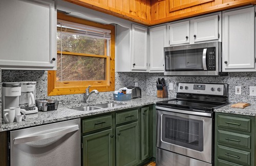 Two miles from the Pigeon Forge Parkway, Cozy Corner feels like an enchanted treehouse as you gaze through giant windows into a beautiful forest view. Easily accessible and newly remodeled this serene cabin offers both privacy and proximity to famous attractions like Dollywood, The Island, and the Smoky Mountains. Play PacMan or air hockey in the game room, soak in the private hot tub, or sway on the porch swing at sunset. Perfect for family gatherings, friend groups, or a coupleβs getaway.