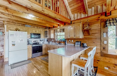 You will feel like you are on top of the world in this stunning four-bedroom, three-bathroom Norris Lake cabin that sits on a bluff overlooking the misty mountains and lake. There is enough room for everyone, so the whole family can come along (and perhaps even a few friends!). From the moment you first walk in, you will fall in love with the cabin's great room and its high, exposed wood-beamed ceilings and stone fireplace. The fully equipped kitchen has everything in it you need to prepare your favorite meals while on vacation, and then you and your travel companions can gather around the beautiful dining table for a fun family dinner. Everything else you could possibly want in your home away from home is here, including free wireless internet, gorgeous hardwood floors throughout, satellite TV, and an on-site laundry facility. All the beds have premium quality mattresses, so you get enough rest before all your exciting days filled with lake activities. During lazy evenings at home, challenge the kids to a game of pool in the basement, and then head out to soak in the private hot tub under the stars. Sit back, relax, and enjoy the tranquility!
