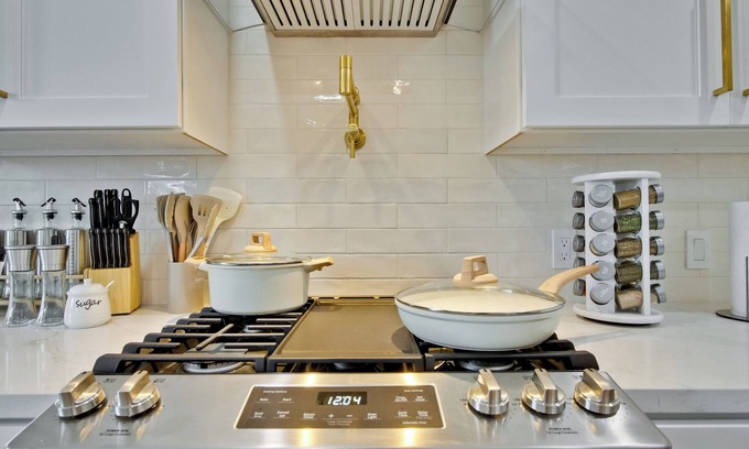 You’ll have access to quality cookware, dinnerware, wine glasses, and utensils along with a coffee maker to get your day started right and all the cooking essentials you would need right at your fingertips.