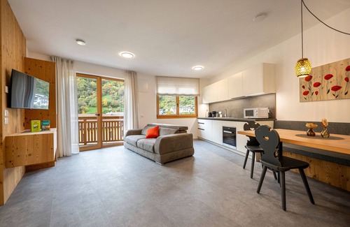 Charming one-bedroom apartment with a balcony and mountain view, that can accommodate a maximum of 2 people.The modern furnishings date back to 2023, featuring typical mountain characteristics without sacrificing modern comfort.The property consists of a double bedroom, a living room with a kitchenette, a bathroom equipped with a shower, bidet, toilet, sink, and washing machine, and a west-facing balcony accessible from both the bedroom and the living room.The kitchenette is equipped with everything you need for your holidays in South Tyrol, including a dishwasher, oven, microwave, hob, coffee maker, kitchen utensils, dishes, and cutlery.The charming balcony, furnished with seating and a small table, allows you to enjoy the evening sun, as it is west-facing and offers a view of the village and surrounding mountains.The apartment is located on the 3rd floor and can also be reached by an elevator.Pets are NOT allowed.Wi-Fi, linens, and towels are available free of charge.According to recent provincial law this apartment can accommodate a maximum of:- Adults (from 14 years): 2- The remaining beds can only be occupied by children up to 13.99 years of age at the time of departurePlease note that this law is subject to strict controls by the competent authority and violation of it results in substantial fines. For this reason, no exceptions will be possible under any circumstances.Apartments No. 10 offers modern apartments built in 2023, in Ponte Gardena, a charming village strategically located for easily reaching all the major attractions in South Tyrol!Ponte Gardena is located directly on the north-south axis of the Munich-Venice bike path and is strategically positioned for travelers heading from the north to Lake GardaThe location is ideal, as it is right in the center of the village, with a supermarket, shops, bars, etc just below. Public buses also stop right in front of the house. The train station is about 300 meters away. Just behind the house begins the walking path that leads to Trostburg, a characteristic castle overlooking Ponte Gardena.In winter, the location is strategic, as the buses stopping in front of the house can take you to Val Gardena includign Alpe di Siusi, where you can ski on the legendary Sellaronda in the Dolomiti Superski, or to Plose, near Bressanone. Additionally, for those who prefer to enjoy winter with cross-country skiing or simply walking in the snow, the Villandro alpine pasture can be reached in less than 30 minutes by car! During Christmas time, you can easily reach the major Christmas markets in Bolzano, Merano, Bressanone, and Vipiteno using public transportation.In summer, the location is perfect, as it allows you to visit all the major attractions of South Tyrol by car or public transport. From the Dolomites to the vineyards in southern South Tyrol, all the way to Lake Braies in the Puster Valley, everything is easily accessible. All major cities in South Tyrol are reachable with the public means of transport from Ponte Gardena.House No. 10 offers free outdoor public parking within walking distance, Wi-Fi, bike and ski storage, washing machine, and free use of linens and towels. There is one garage parking spot only, which can be used from both apartments, therefore the availability is not granted.Pets are NOT allowed.Choose Apartments No. 10 for your holidays in South Tyrol, the perfect solution to have all the attractions at your fingertips!Check-in: 15:00 - 19:00 at MUSE.holiday office in Via Arnaria 9A, OrtiseiSome houses have remote check-in at the house with code access, we ask you to contact us about this at least 48 hours in advance to check if the house you have booked is among them.Check-Out: In person from 8:00-9:00 at MUSE.holiday office in Via Arnaria 9A, Ortisei (except houses with code access)Not all houses allow pets. To avoid misunderstandings, we ask you to inform us by separate mail if you intend to bring them with you. In houses where pets are allowed, there is a surcharge of € 15.00 / animal / night. Baby cot, high chair and cot rail are available for a fee and must be booked in advance.Check-In after 7 p.m. only possible with prior notification by 6 p.m. day of arrival and upon submission of required documents and payment of tourist tax + extras by credit card for check-inHeating is on from October to April (during this period the heating is not on if the outside temperature exceeds 15°c or if the inside temperature reaches or exceeds 21°C)Charging of electric vehicles or other storage devices not permitted, unless otherwise stated in the advertisement. If allowed, it is available only after reconfirmation by MUSE.holiday and at a variable extra cost.In case of wasted electricity, gas or other utilities there is an additional cost (e.g.: lights on all day in the absence of guests, heating running with open windows).It is duty of the guests to open the windows at least twice a day, once in the morning and once in the evening, for at least 5 minutes each, to let humidity exit the apartment and avoid mold formation. If this rule is not respected and mold is found upon departure of the guests, costs to restore the apartment integrity will apply.Due to the geographical location, Wi-Fi may be interrupted or slowed down, so this service is not always guaranteed.The house is not equipped with foodstuffs such as cooking spices or various consumables such as shampoo, soap, etc... Any consumables present are intended only as a welcome kit and will not be refilled during your stay.The payments required to enter the flat are the tourist tax + pre-authorization through SWIKLY of the security deposit by credit card of 500€.If not previously agreed, the physical keys, the benefit card and other accessories provided at check-in are to be returned to the MUSE.holiday office in Via Arnaria 9A in Ortisei, otherwise 50€ will be charged for key collection.The final cleaning amount covers a standard cleaning only. It does not include the wash