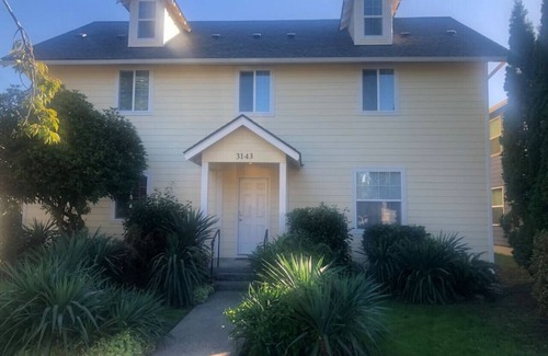 Remodeled apartment from studs up feels like new! Modern remodel with 9' high ceilings, LVP flooring, custom cabinetry, work desk, quartz counters, tiled bathroom, ductless heat pump that also provides AC. There is a covered interior hall entrance from front door or off-street parking in the back alley. This unit has new furnishings and is very fully stocked for your convenient and comfortable stay. #4 is upstairs right.
