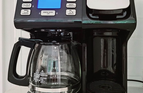 Kitchen - fully equipped, electric range, microwave, dual coffee maker can brew pods or grounds.