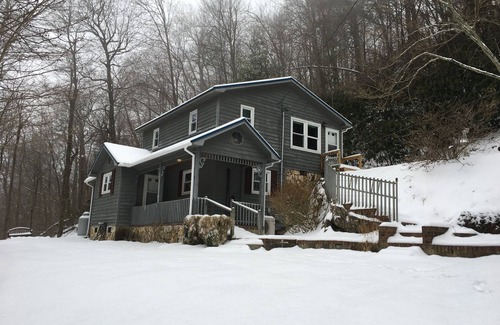 Book your stay at this cozy mountain cottage! The residence features an indoor fireplace, rustic wood surfaces, mid-century touches, and a layout allowing for privacy between the upstairs and downstairs sleeping areas with queen beds in each of the three bedrooms. Fully equipped kitchen with stainless steel appliances downstairs; flat screen TV upstairs in living room. Relax at the fire pit while roasting marshmallows after a day on the slopes of Appalachian Ski Mountain. Sip coffee on the porch listening to the sounds of the property’s babbling brook. If you need to work, there is high speed internet and a separate home office. Just minutes away from hiking, skiing, the Blue Ridge Parkway, and all that Boone/Blowing Rock has to offer. All wheel drive or chains needed when it snows due to a steeper driveway; 3 car max. If you have any questions about the house or area, feel free to ask!