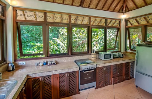 The Villa welcomes you to Ubud, the cultural heart of Bali that is resplendent in a cloak of lush green rice fields and a backdrop of traditional Balinese villages. The villa is completely surrounded by rainforest jungle, as far as the eye can see and below, the river runs its course. The ambiance is utterly peaceful, no wonder this villa is called Umah Shanti, which translates to 'house of peace'. With three separate bedroom bungalows, this villa is a dream come true for those seeking a traditional home away from home with a back to nature feel. It will be traumatic to leave!