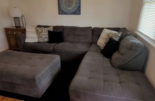 This Fayetteville house boasts 4 inviting bedrooms. With 2 full beds and 2 queen beds, there's plenty of space for guests to relax and unwind. The property also features 2 bathrooms, complete with a shower and bathtub. In addition to the cozy bedrooms and bathrooms, there is an additional living room space with 2 sofa beds, providing even more room for everyone to spread out. Extras include a home office area and laundry room with both washer and dryer for convenience. Our kitchen refrigerator boasts an ice-maker and Kurig for your beverage delights! Whether you're enjoying the marvelous bedrooms or lounging in the living room, this wonderful house is the perfect home away from home for your vacation. We'll be available to answer any questions while you stay at our place.