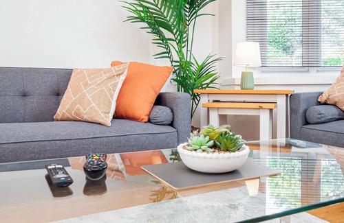 Enjoy the convenience of modern hotel comforts, including free Wi-Fi, a 50-inch smart TV in the living room with built-in Netflix and other applications, high-quality beds and furnishings, and hotel-grade linen.