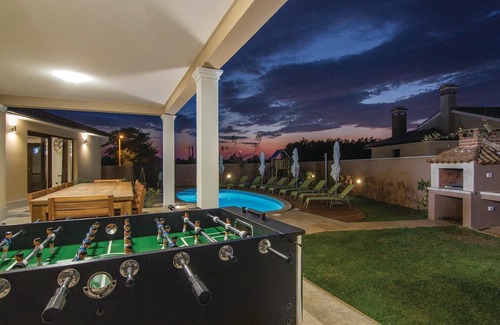In a small village near the medieval Svetvincenat is situated this superb holiday home. Interiors are of quality and stylish well designed and fully adapted to the standards of today. What is attractive is certainly a spacious basement where there is a sauna, but also a tavern with an additional kitchen where you can play pool or darts. Fenced yard is dominated by a spacious covered terrace and swimming pool equipped with hydro massage jets. Be sure to visit tourist centers Rovinj, Porec, Rabac, and ancient Pula rich on historical and cultural heritage, as well as culinary delights and entertainment options. The neighboring house is CIC409 of the same owner. Please note that: Bed linen and towels are included in the room rate. Consumption costs are included in the room rate. Outdoor private pool on site is open May - end September. - Free parking on site - Pool open May - end September - Private outdoor swimming pool - Consumption costs incl. - Air conditioning cold/hot - Bedlinen incl towels (included) - Final cleaning (included) - Cot: 1 - Child's chair: 1