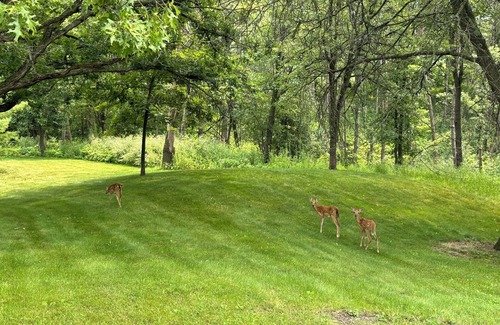 Our 22 acre property has over a mile of wooded trails and a huge yard with a fire pit, play structure and gardens. The large deck has a new grill, and lots of seating for outdoor meals. Kitchen is well-stocked to prepare food to fuel all your Kettle Moraine adventures. A great place to unplug!
