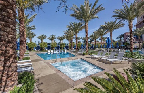 Everyone is a VIP at Club Wyndham Desert Blue. In the equally energetic and laid-back spirit of Las Vegas, top resort amenities include two outdoor swimming pools, a wading area, and a pair of outdoor hot tubs. Of course, it wouldn't be Vegas without places to relax with family and friends before going out. For times like these, guests are welcome to rent poolside cabanas with mini fridges, fans, and TVs. There's also a poolside bar, fire pit, game room, and full fitness center, all at your service.