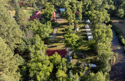 Experience a memorable family glamping adventure in our spacious Family Safari Tent. This tent is thoughtfully designed with one king bed and two twin beds, accommodating up to 4 guests comfortably. Snuggle up on the Casper mattress pads with heated mattress pads for a cozy night's sleep. Enjoy the convenience of dishes and cooking equipment provided in the tent, and indulge in the modern bathhouse with showers, toilets, and hot water just steps away. Immerse yourself in the tranquility of the Pecos River, right at your doorstep. Create cherished family memories amidst the beauty of nature at our Family Safari Tent.