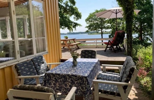 A stone's throw from the sea with fantastic views, this pleasant and spacious house is located in lush greenery. You can't get any closer than this for a morning or evening dip. Here you can enjoy the tranquility of the archipelago and collect great holiday memories with family and friends. Through the entrance, which is at the back of the house and closest to the parking lot, you enter the kitchen, which has an open floor plan with all amenities for self-cooking. There is also a guest toilet here. Further into the living room with space around the dining table and community on a large sofa with a view of the archipelago. In the three adjacent rooms there is a double bed in each bedroom. A larger bathroom with shower and washing machine. The terrace, which is built alongside the house towards the sea, has a patio door from one of the bedrooms. Here you can enjoy a cup of coffee and at the same time look out over a mirror-like sea. Another patio with garden furniture at an angle to the roofed house also has a patio door from the living room directly out. The coastal strip here is lined with piers and marinas, which means that the small path that runs along the water has a connection to the beach bath a short distance away for everyone who lives in the area. From the house you can see across the bay to Trummenäs, which offers both Padel and a fine golf course. There is also a beach and a restaurant here. You can also take the archipelago boats from here to get around the islands and visit all the sights of the naval city of Karlskrona. In the world heritage city of Karlskrona there is a Maritime Museum with a lot of history and a submarine to go inside, exciting for both young and old. "The children's farm" with a water park, playground equipment and farm animals to pet provides wonderful summer memories for the whole family. In beautiful Blekinge with much to experience both on land and at sea, there is something for all tastes. Welcome!