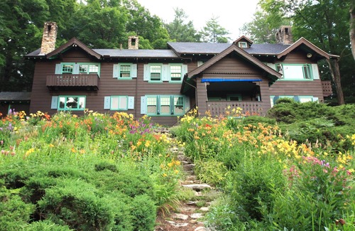 This spectacular, 40-acre estate is located on clear, warm Highland Lake in Bridgton, Maine, halfway between the Atlantic Ocean and the White Mountains of New Hampshire. The extensive grounds provide a private, peaceful, park-like setting which fosters relaxation and engenders a sense of well-being. The property includes more than 1,000 feet of mainland waterfront with two sandy beaches, part of a small nearby island, a two-story boathouse with a 2nd floor activity center (originally the estate's ballroom), a 52-foot pier, a clay tennis court, a grass volleyball/badminton court, three large sports fields, extensive woods, wildlife, and thousands of flowering plants.