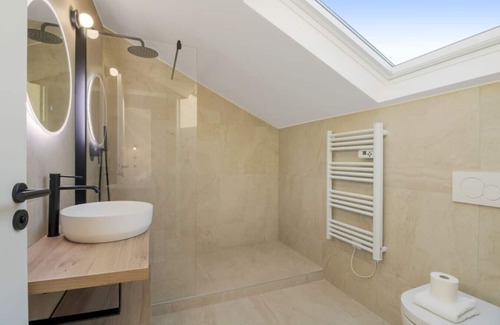 This newly renovated apartment is located on the fourth floor of a small building without elevator. It offers a comfortable, modern and warm space comprising two bedrooms with double bed and TV, two shower rooms, a separate toilet, and a living room equipped with a TV, a sofa bed for two, and a modern equipped kitchen. Enjoy your stay in this stylish and comfortable apartment!