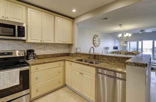 The fully equipped kitchen offers granite counters and a washer/dryer in the laundry room. Cable, and Wireless Internet are available to all SMART TVs (living room, master bedroom and guest bedroom). The sleeper sofa in the living room allows this unit to sleep eight comfortably. Captains Walk features a large swimming pool, a baby pool, cabana, large sunning deck, gas grills, and boardwalk to the beach.