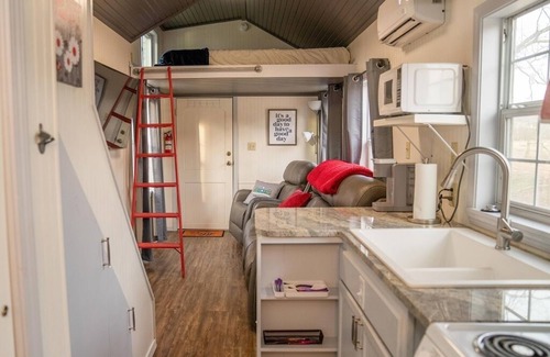 Welcome to your charming retreat, a cozy haven that redefines comfortable living in a small space. This thoughtfully designed tiny home seamlessly blends functionality that invited natural light to dance across the warm hardwood floors. The efficient kitchen boasts modern appliances with cleverly designed loft bedrooms that offer tranquil escape.