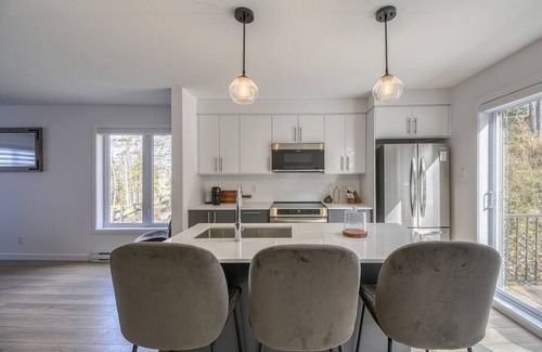 Welcome to Mont-Blanc, our ski-in/out townhouse! Relax in this 4-bedroom, 3.5 bath retreat, complete with a workspace for business on-the-go and a cozy basement for chill nights in. This home is an outdoor enthusiast’s dream, with mountain biking trails accessible by lift at MBPark Mont-Blanc. You have your own private hot tub and access to the shared inground pool in the Summer. Just a 5-minute drive from Saint-Jovite, you are closely located to Tremblant’s best restaurants and local shops.