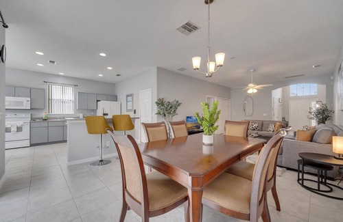 Enjoy a peaceful fall retreat this August, September, or October in this comfortable 4-bedroom, 3-bathroom vacation home, located in the gated Crystal Cove Resort—just 15 minutes from Disney World.