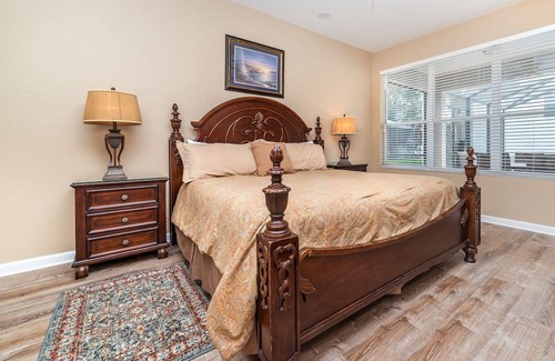 5 BD 5 BT villa in Windsor Hills Resort. Cozy bedrooms sleep 10 guests. Kitchen with new cabinets, stainless steel appliances, and granite countertops. Living room with 50 Smart TV. Screen-porch patio with pool and spa. Game room with foosball. Washer, dryer, and free WiFi. Resort amenities, parking, and smoke-free. Towels, linens, and starter welcome packet provided. Sleeping arrangements: 2 king beds, 2 twin beds. Private