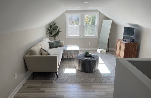 Discover our 5-bed, 3-bath near Wake Forest University, Winston-Salem. Enjoy a spacious yard with a fire pit, a master suite with a private bath, and separate upstairs quarters with a bed and bath. Perfect for families or groups. Explore the area or unwind in our peaceful neighborhood. Your home away from home!