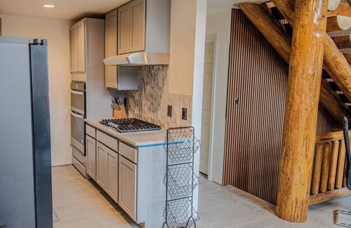 Centrally located cabin in Brian Head, UT between Giant Step and Navajo ski slopes. 5 rooms, 4 full bathrooms, 13+ beds, 2 living spaces, 2 full kitchens and a fun lower level with pool table, darts, karaoke and arcade games. The above garage apartment can be closed for privacy or left open for optimized use of the space. Close enough to walk to dining/entertainment. Plenty of free parking for all guests!