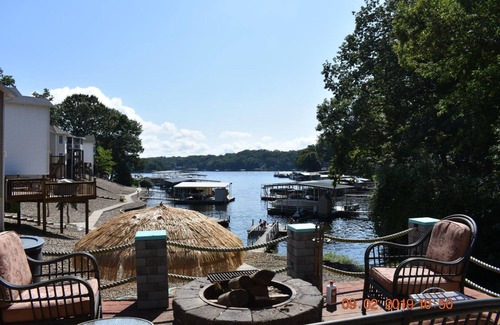 Check out our new beach and newly installed hot tub! Tropical themed retreat nestled at the end of a cove on the 3 mile marker at the Lake of the Ozarks.