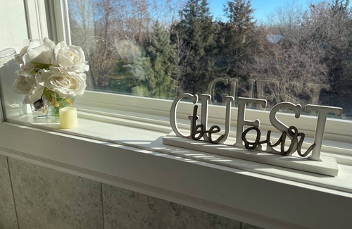 Enjoy amenities like WiFi, AC, Hot Tub, 2 Fireplaces, Craft & Game room, Wood Fire pit, Gas Fire table, Washer/Dryer and more! The 210 gallon salt water live reef aquarium is a tranquil backdrop for relaxing with friends over a couple of cocktails & cards! There is a main floor half bath & 3 luxurious bathrooms to get you looking and feeling your best in the morning. Some toiletries, Nexxus shampoo & conditioner, bodywash, a makeup mirror and hair dryer are provided for your convenience. The backyard has a sitting area patio next to the hot tub and waterproof underdeck with lights & a ceiling fan for those hot, sunny days or rainy nights listening to a good thunderstorm. We are still adding the serving area under the deck. While the large upper deck is perfect for grilled dinners watching the sunset. It has a table that can seat 8 in comfortable swivel chairs. After dinner, sit in the sofa by the fire table under the cafe string lights and enjoy a glass of wine, while the rest of the family heads to the firepit to make some Smores! Let us help you make our home, your home - if only for a little while! We're happy to assist with any questions email text or call, we'll do what we can to make your stay enjoyable!