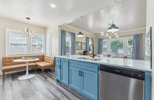 Welcome to Bricktown Bungalow — your stylish, family-friendly getaway just minutes from everything in Downtown OKC! Enjoy a relaxing hot tub, firepit, pickleball court, and private game lounge with arcade games, billiards, and foosball. Sleeps up to 10 with 3 spacious bedrooms (5 beds) and 2 full baths. 50 inch Roku TVs in every room. Cook with ease in the fully stocked kitchen or on the grill. Professionally designed for comfort, fun, and unforgettable memories.
