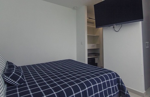 Our lodging in Tibás offers a spacious and cozy apartment with two beautifully decorated bedrooms. The master bedroom has a comfortable full-size bed, a private bathroom with hot water, and a TV with cable and streaming services. The secondary bedroom has a sofa bed, a desk, and a monitor perfect for working from home with our 200 Megas of fiber optics.