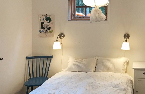Welcome to this cosy holiday home, set on a beach plot and surrounded by scenic nature. The cottage has a lovely conservatory, and a terrace, with a great view of lake Ånimen. This is the perfect place for nature lovers in search tranquility! The cottage features a spacious kitchen with all of the basic amenities. The living room is open-plan and has a cosy wood-burning stove and a comfortable sofa. There are two small bedrooms, one with two single beds, the other with a double bed (width 140 centimetres). One guesthouse with a double bed. The bathroom has a WC, a washbasin, a shower, and a washing machine. The house has a conservatory and a terrace with outdoor furniture and a grill. A boat is included in the rent and the fishing water here is excellent. There's a barbecue area by the beach, where you can grill the fish that you catch. There's a communal, wood-fuelled sauna in the neighbourhood. Åmål is to the north, and offers cafés, restaurants, and shops. Once a year, in July, there's a blues festival which lasts a weekend. Welcome to this peaceful holiday destination!