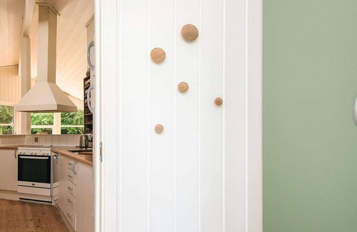 Layout: Kitchen(cooker(electric), coffee machine, dishwasher, freezer(1-59L), fridge-freezer), Living/bed room(TV(german television channels, danish TV channels (DR1 and TV2), norvegian TV channels , swedish TV channels)), bedroom(double bed), bedroom(double bed), bedroom(single bed), bathroom(washbasin, shower, toilet, washing machine), heating(electric), terrace, garden, garden furniture, air to air heatpump