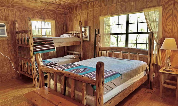Quaint, affordable Cabin nestled atop the Bandera County Hills. Every guest has 24/7 access to our Grand Lodge. Explore all 227 acres of the ranch on horseback for an additional charge!