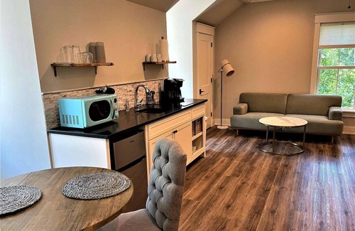 Beautiful practically new garage studio in a million-dollar neighborhood with high end decorator finishes close to the May River. There is an open floor plan with luxury plank flooring, a kitchen area with a cooktop, microwave and refrigerator/ freezer and a private roomy bath with decorator tiles. This clean and bright studio in Historic Oldtown Bluffton is located in Stock Farm and is walking distance to many historic sites, restaurants, shopping and Art galleries. The May River Oyster Park is a short distance from this property. It is located just 30 minutes from Savannah and 20 minutes from the beautiful Beaches of Hilton Head Island. The kitchen is stocked with cooking essentials including a Keurig/combo drip coffee pot. Bring your kayak, paddle boards and bikes or rent a golf cart to get around and explore Old Town Bluffton.